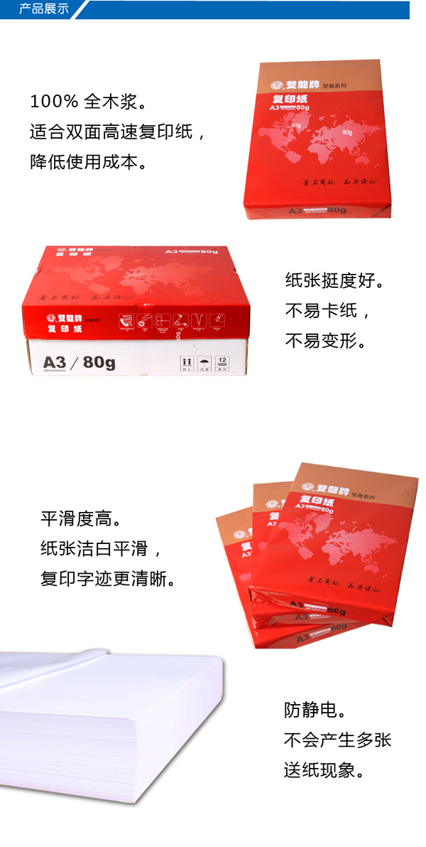 雙龍80克A3至尊系列復印紙
