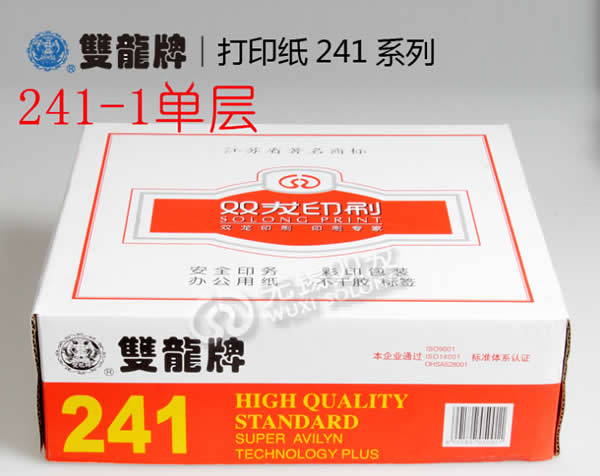 雙龍241-1單層空白打印紙 1000頁(yè)/箱